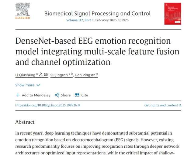 我校科研团队在生物医学信号与人工智能领域权威期刊《Biomedical Signal Processing and Control》上发表最新科研成果