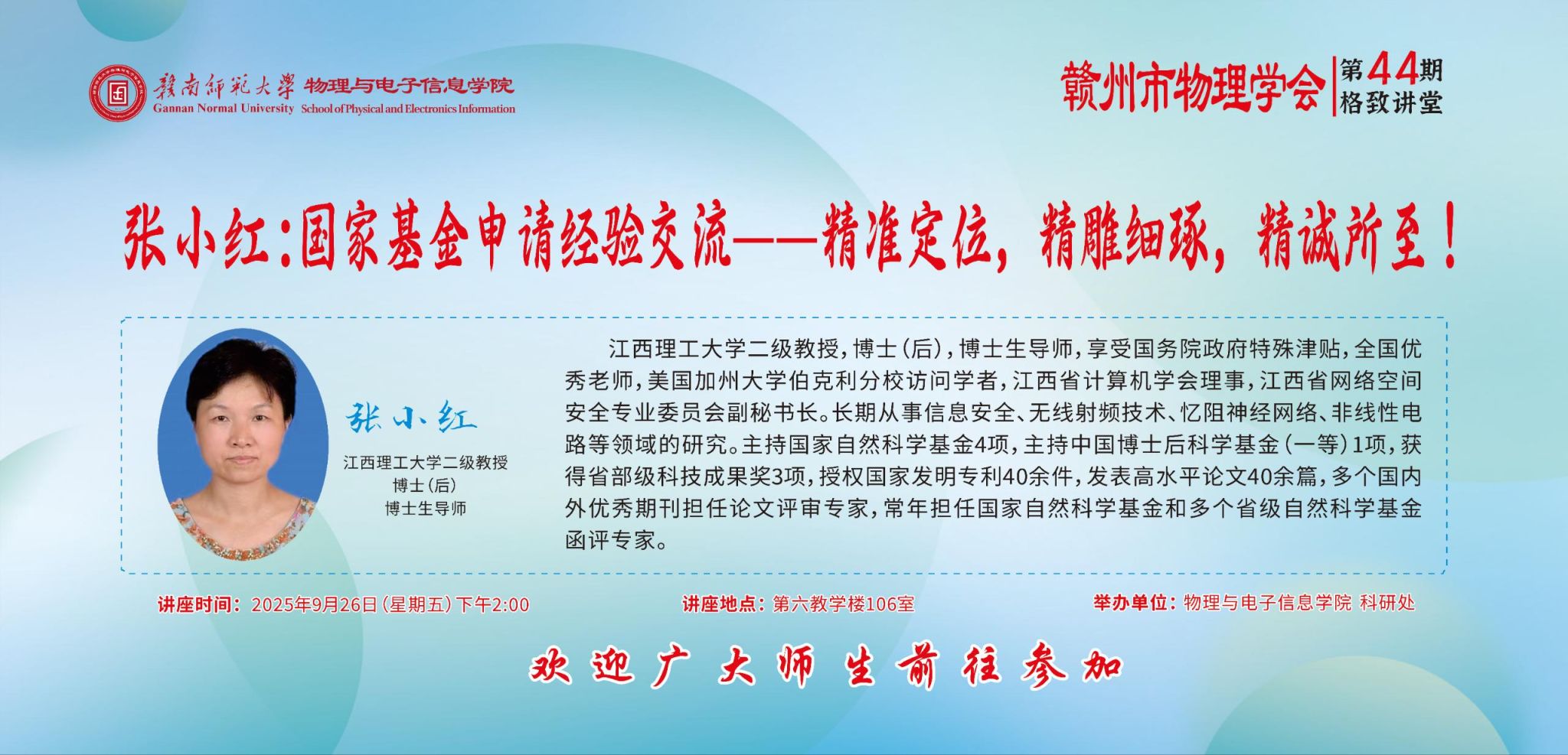 【格致讲堂】第四十四期 张小红:国家基金申请经验交流--精准定位,精雕细琢,精诚所至!