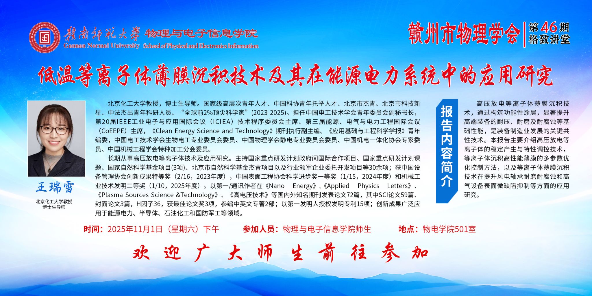 上一条:【格致讲堂】第四十五期 微气泡增强的等离子体反应器中活化液制备与放电特性研究